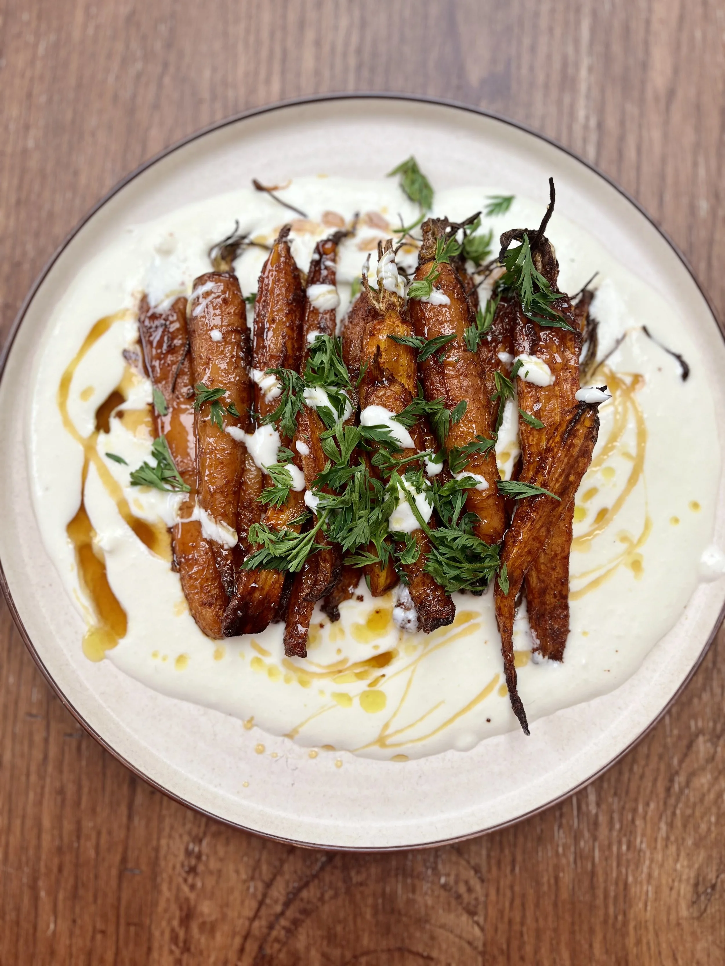 Spiced Honey Roasted Carrots with Kefir Feta Whip
